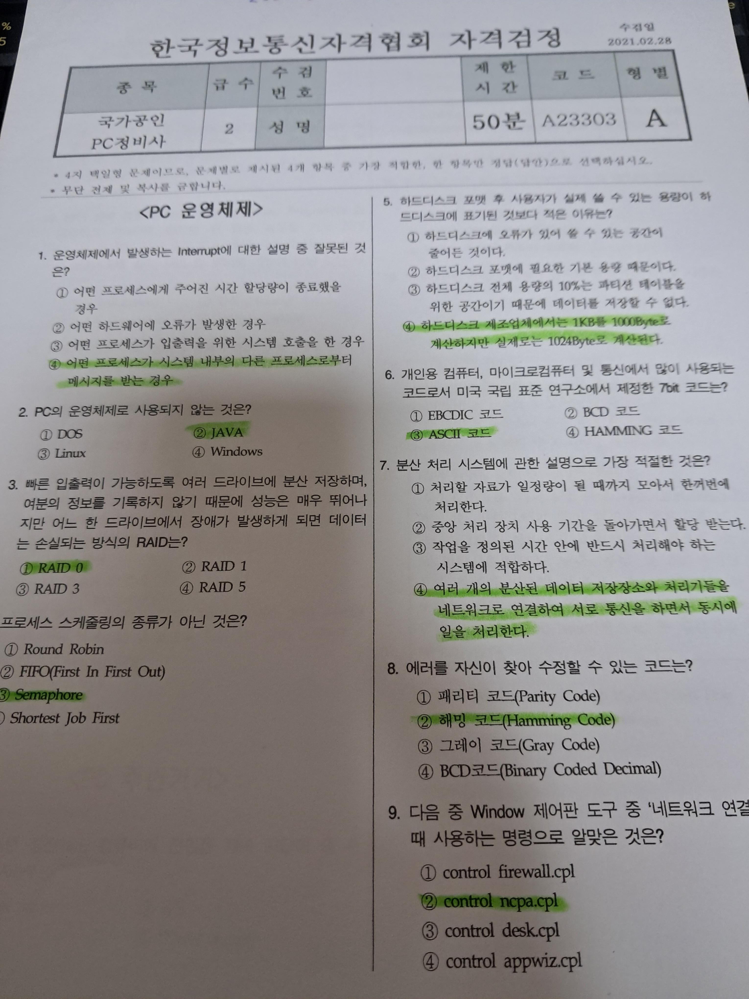 2021년 1회차를 인쇄해서 정답 체크를 하고 문제를 보는데.....
