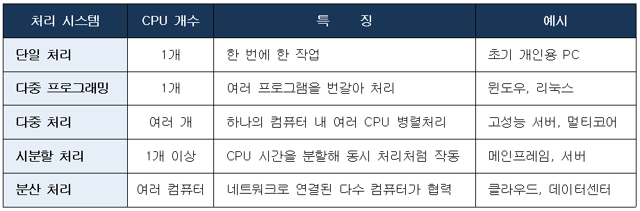 컴퓨터 처리 시스템은 컴퓨터가 작업(프로그램)을 처리하는 방식을 말합니다.