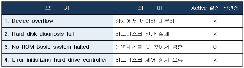 문제 38. 하드디스크가 Active 상태로 설정되지 않았을 경우, 나타나는 메시지는?