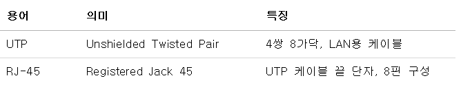 💡 쉽게 말하면, UTP 케이블 끝에 붙여서 컴퓨터, 스위치, 공유기와 연결하는 플러그라고 보면 됩니다.