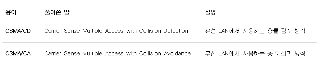 - CSMA/CA는 무선 LAN(802.11)에서 사용하는 방식이에요.