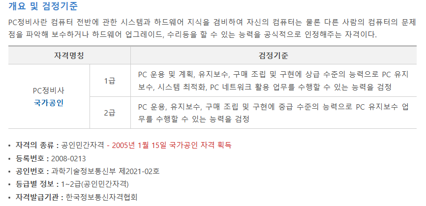 오늘은 PC정비사 자격증에 대한 정보를 좀 더 조사해서 정리해 보았어요.